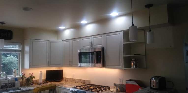 Adding a few can lights, pendants and fixtures to an existing circuit for a customer for a great price. Removed two older fixtures and did it all with minimal drywall removal.